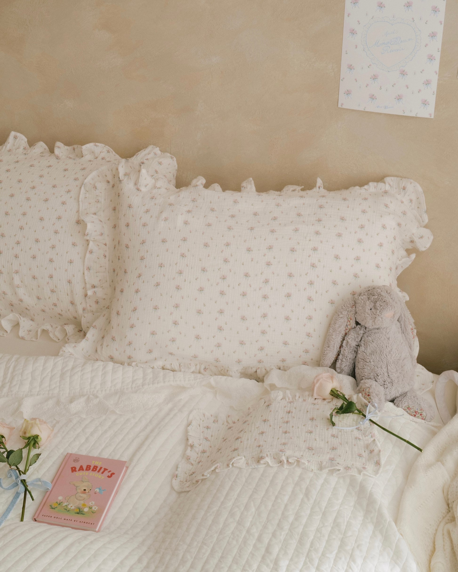 預購*BB x April 🍑 Cotton Gauze Pillow Towel 大人枕巾 | Ribboned Rose(2入)